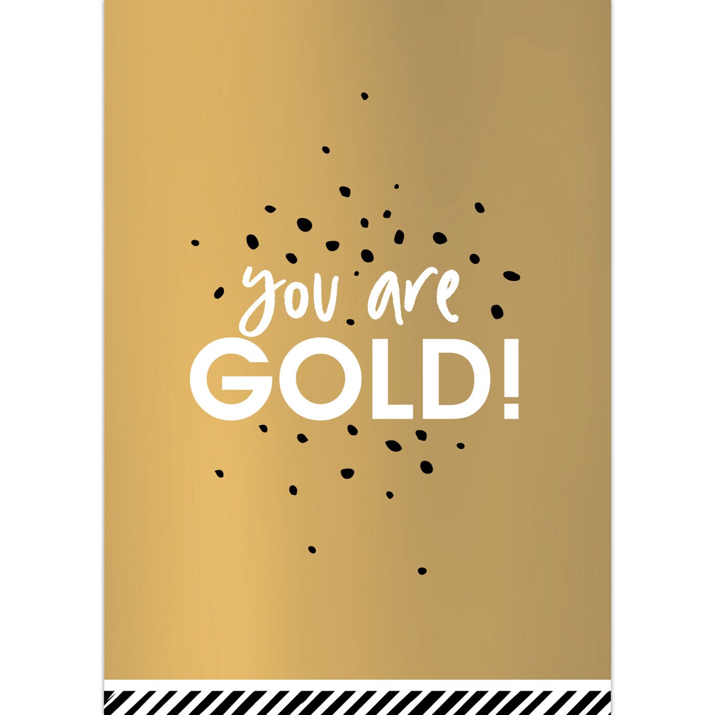 Dit is de kaart voor iedereen die bijzonder is of een bijzondere prestatie geleverd heeft. Deze kaarten zijn voorzien van een prachtige goudfolie achtergrond. Heel passend om toe te voegen bij een : Jij bent goud waard box!