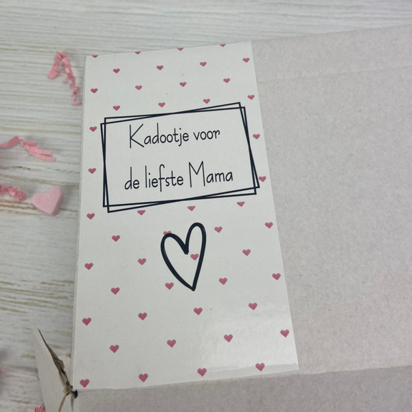 Leuk ingepakt met roze hartjesvloeipapier, Sizzle en mooie 'kadootje voor mama ' sticker.