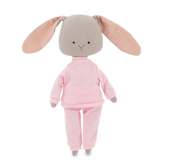 Lucy de Bunny is gekleed in een lief roze joggingpak.
