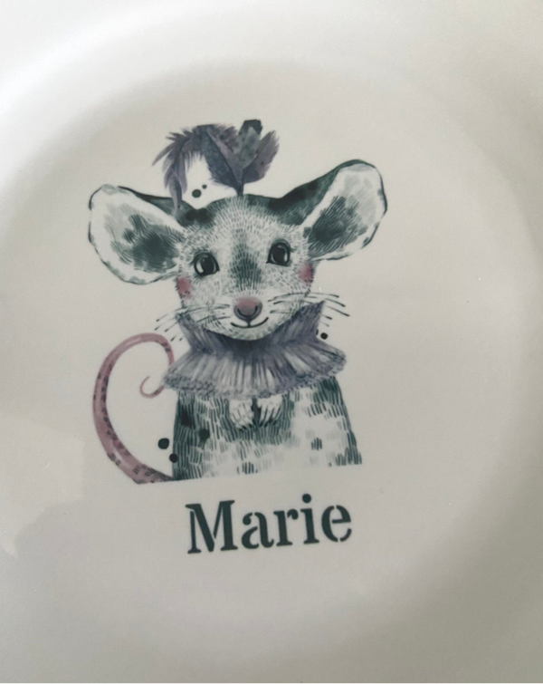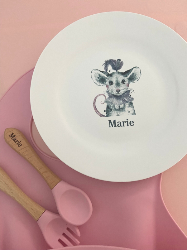 - Bordje en bekertje van duurzaam plastic met afbeelding Muis gepersonaliseerd