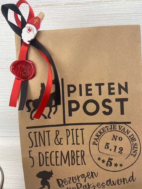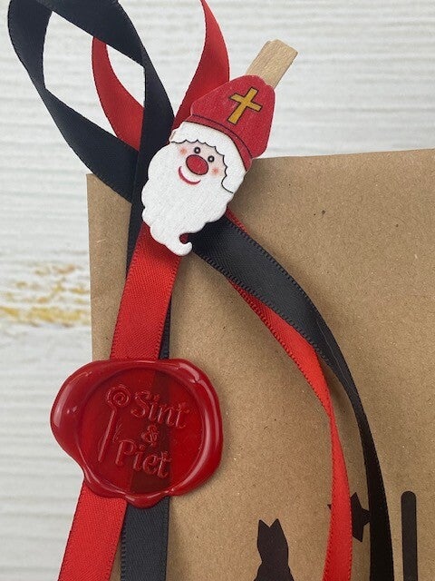 En..Sint heeft ècht zijn zegel gezet op het pakje..dan moet het wel van Sint & Piet zijn toch? Compleet met Sint figuurtjeop knijpertje