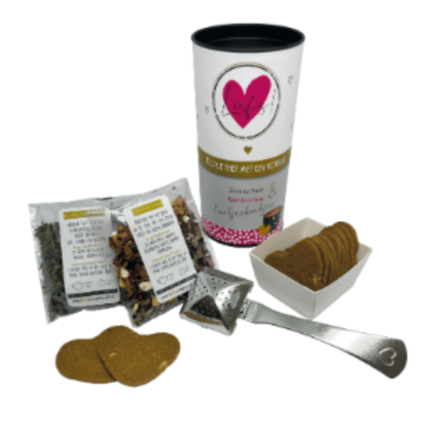 In samenwerking met Verduijn's Fine Biscuits zijn 2 lekkere koekjes samengesteld, hartjeskoekjes (boterspeculooskoekjes) en boterwafeltjes.