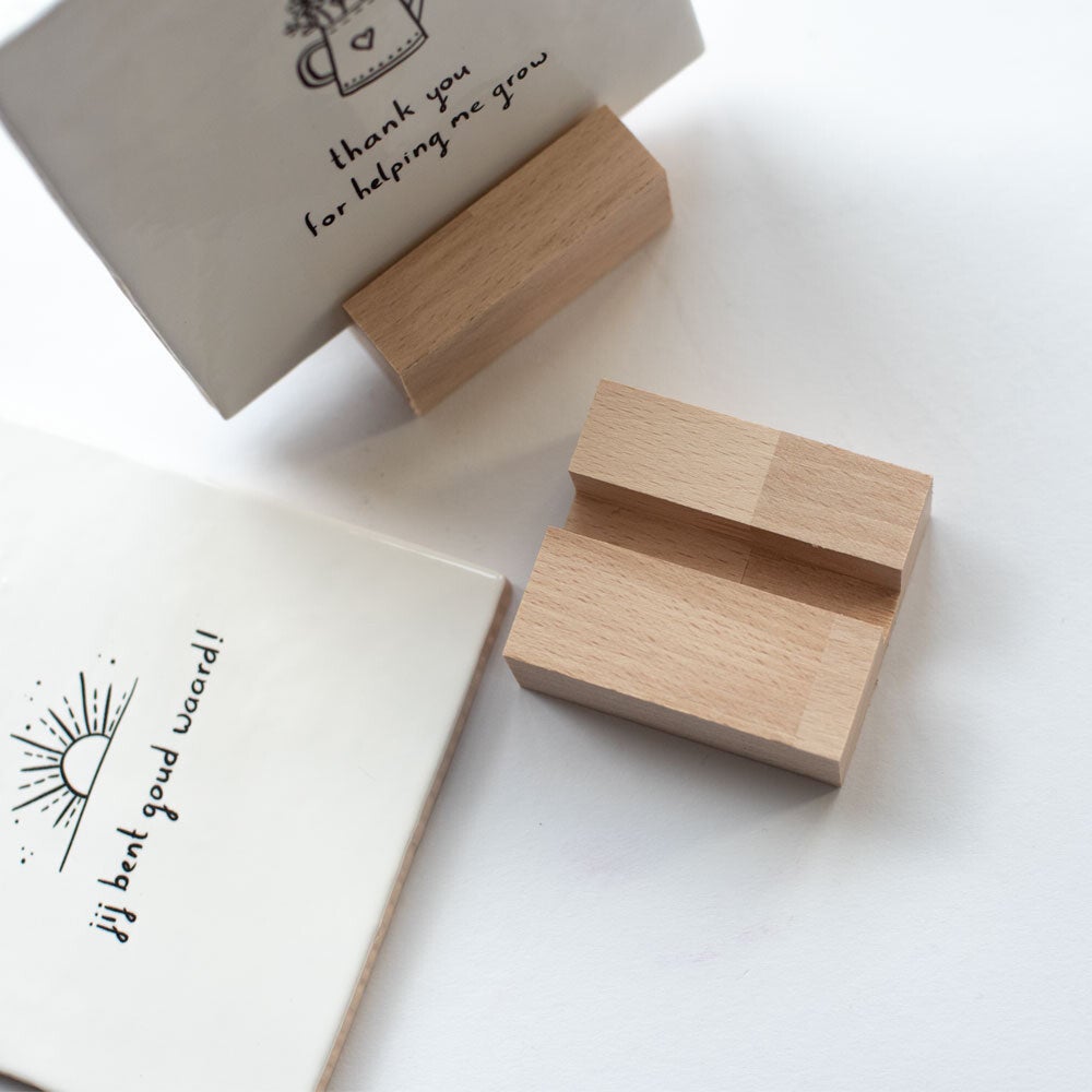 Handig! Met dit houten houdertje van hoogwaardig beukenhout kan je het tegeltje ook ergens leuk neer zetten! Weet je al gelijk een leuk plekje? Misschien in het raamkozijn, op tafel of op het aanrecht!