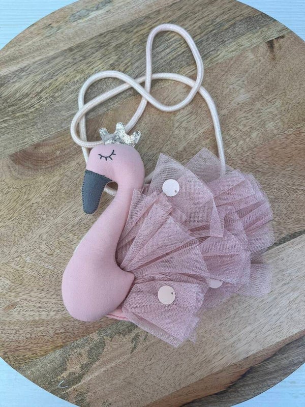 Heel lief tasje met een zwaan, tule en goud.Met koord.Verkijgbaar in 2 kleuren: Wit (ecru) of Roz