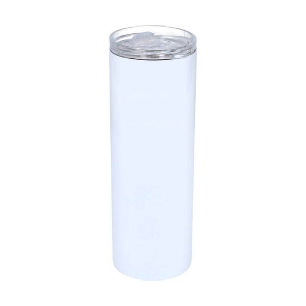 Witte roestvrijstalen thermosfles met rvs rietje