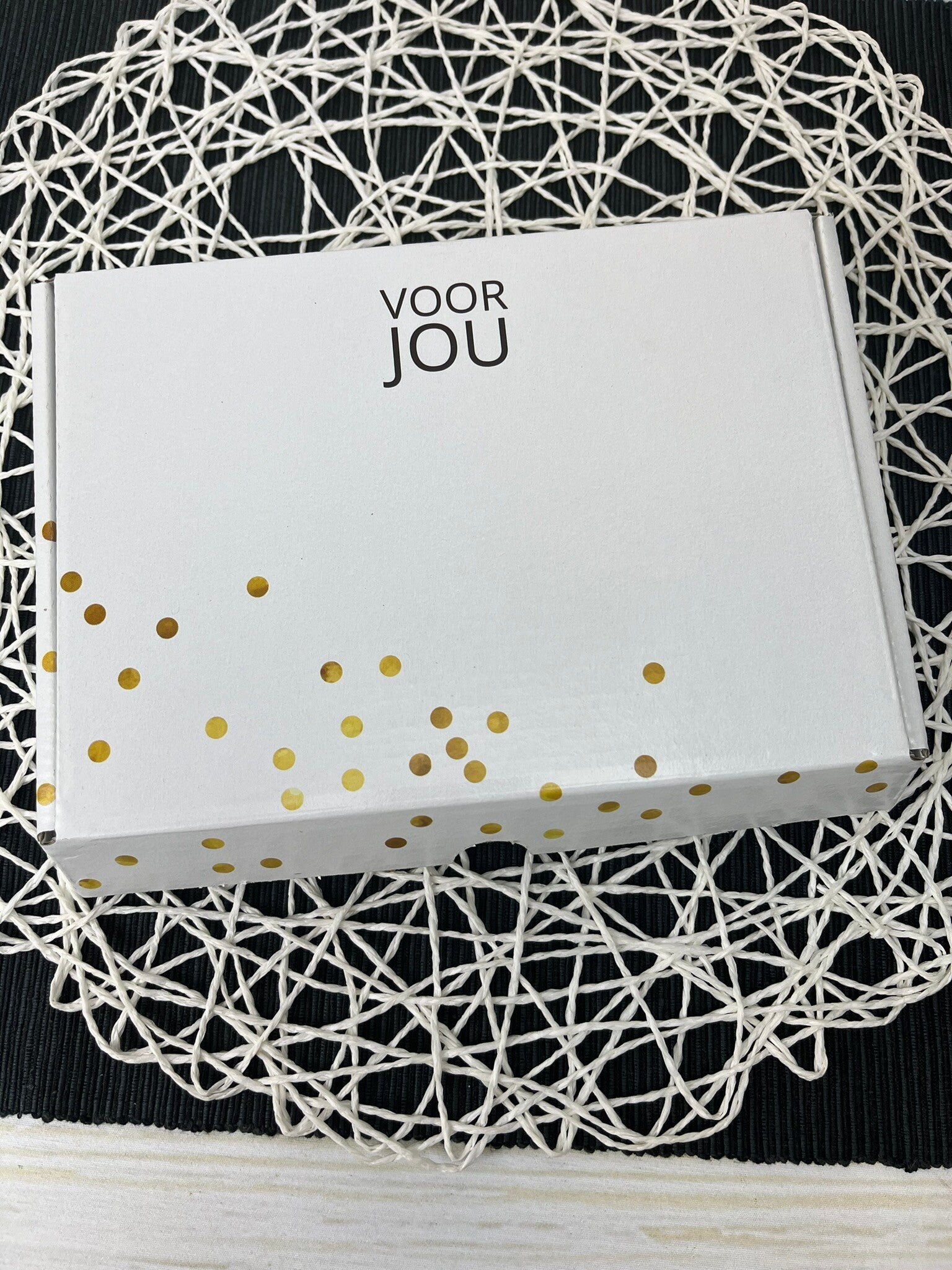 Brievenbus box: Voor Jou. Wijn en borrelnootjes.