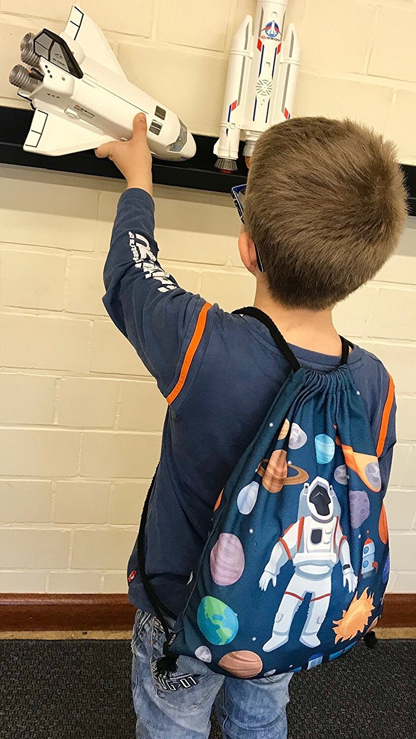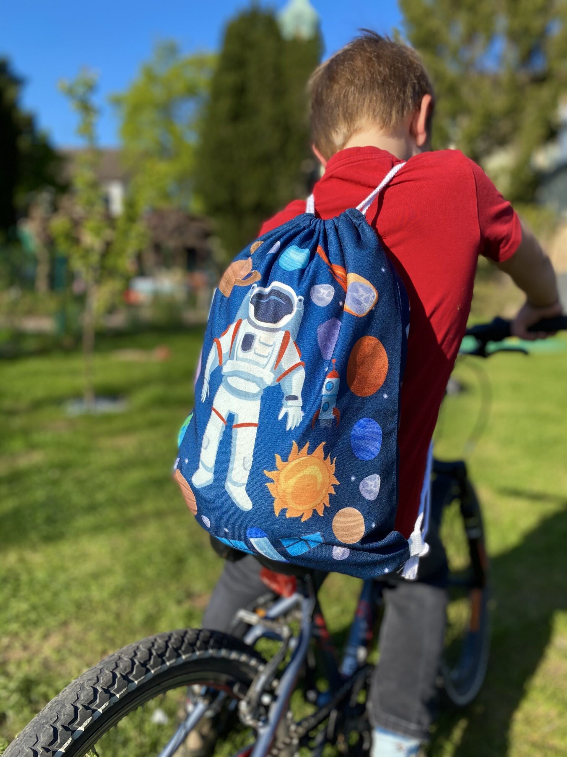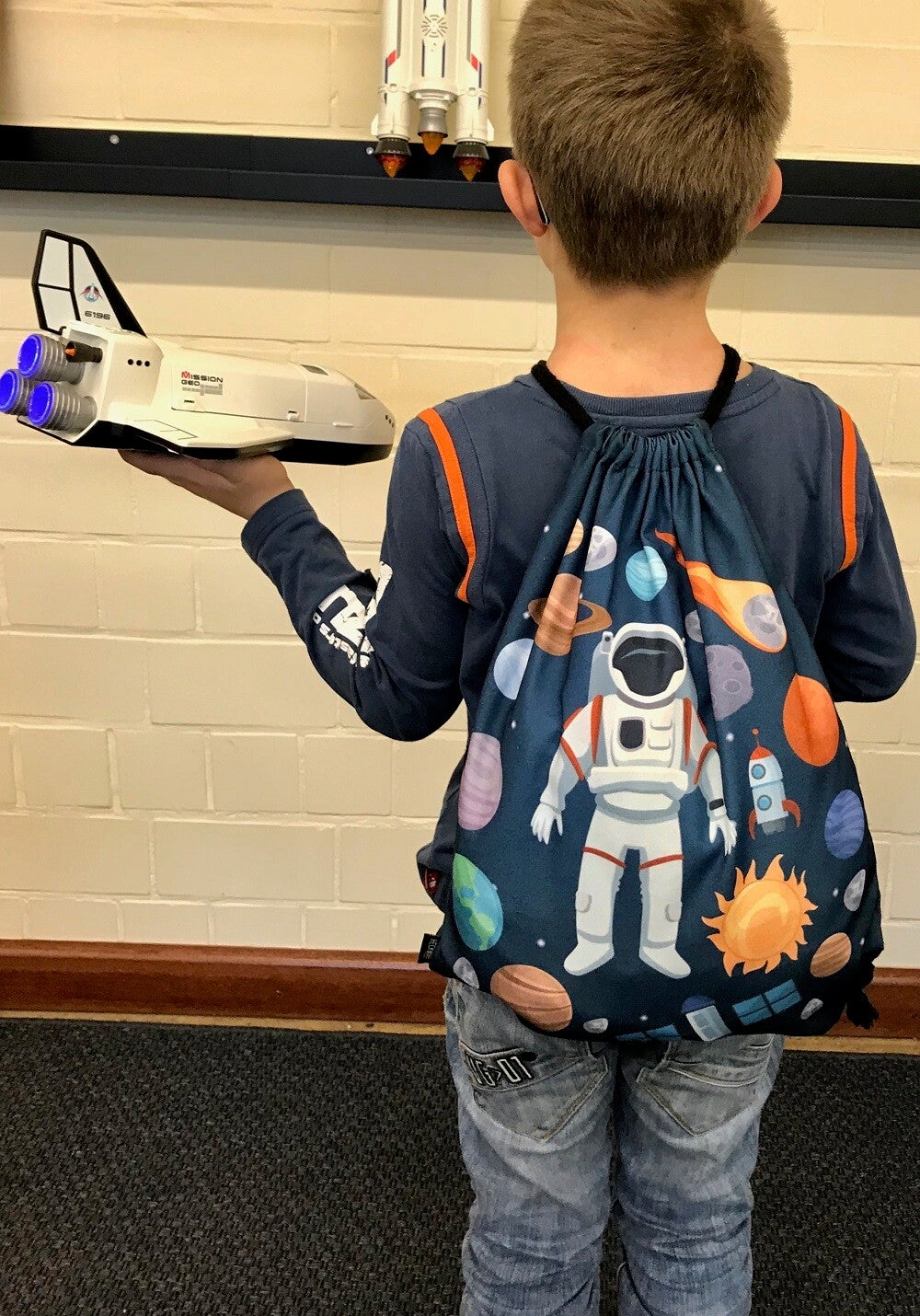 Ziet er cool uit. En mocht de sporttas toch een keer vies worden, dan kun je hem eenvoudig schoonmaken met een vochtige doek of binnenstebuiten wassen op 30° in de wasmachine. 1 Astronautensporttas: