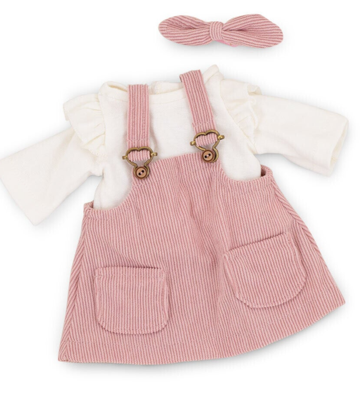 Super stoere ribfluwelen overgooier voor jouw Lucky Doggy.|Met wit blousje met rushes en strik.Kleur roze en wit.