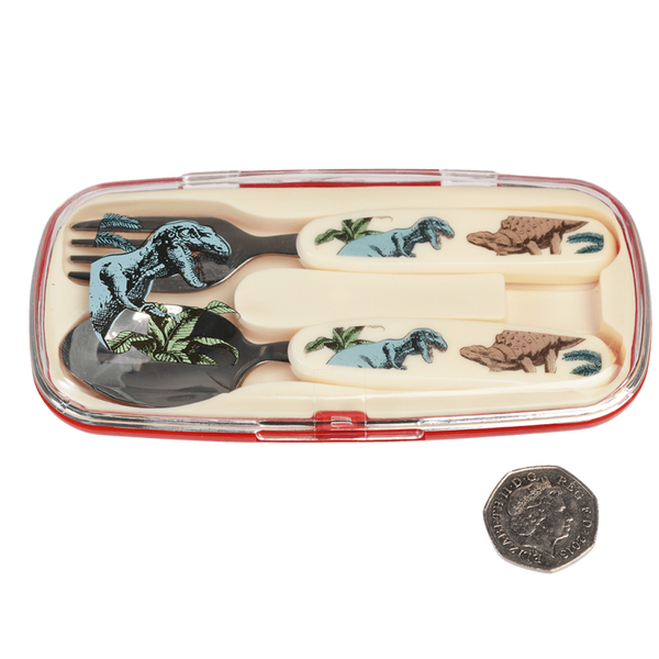 - Krijg kinderen die gek zijn van dinosaurussen aan tafel met dit stoere bestek! Bestaande uit een lepel en een vork. In een handig bewaardoosje.