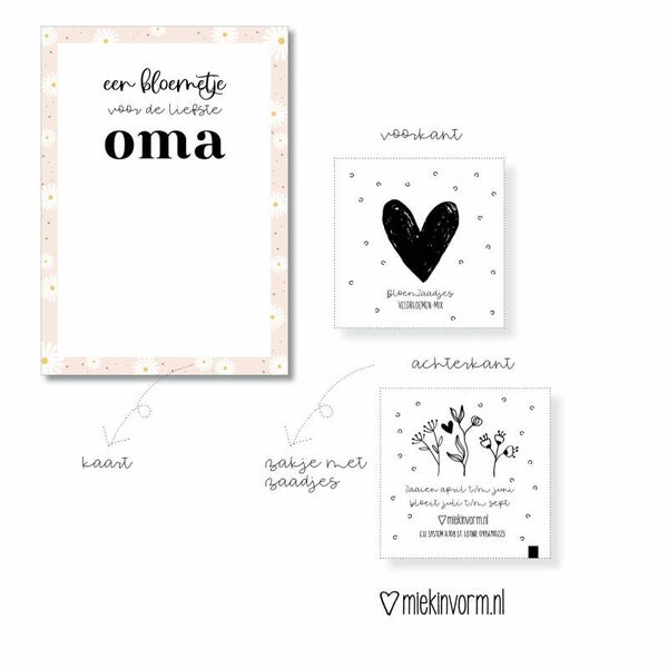 Kaart +bloemzaadjes Een bloemetje voor de liefst oma
