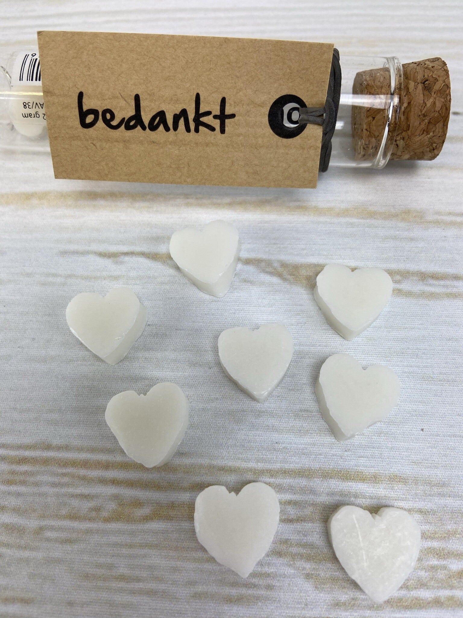 Touch of soap Tube Bedankt! Witte hartjes gastenzeepjes