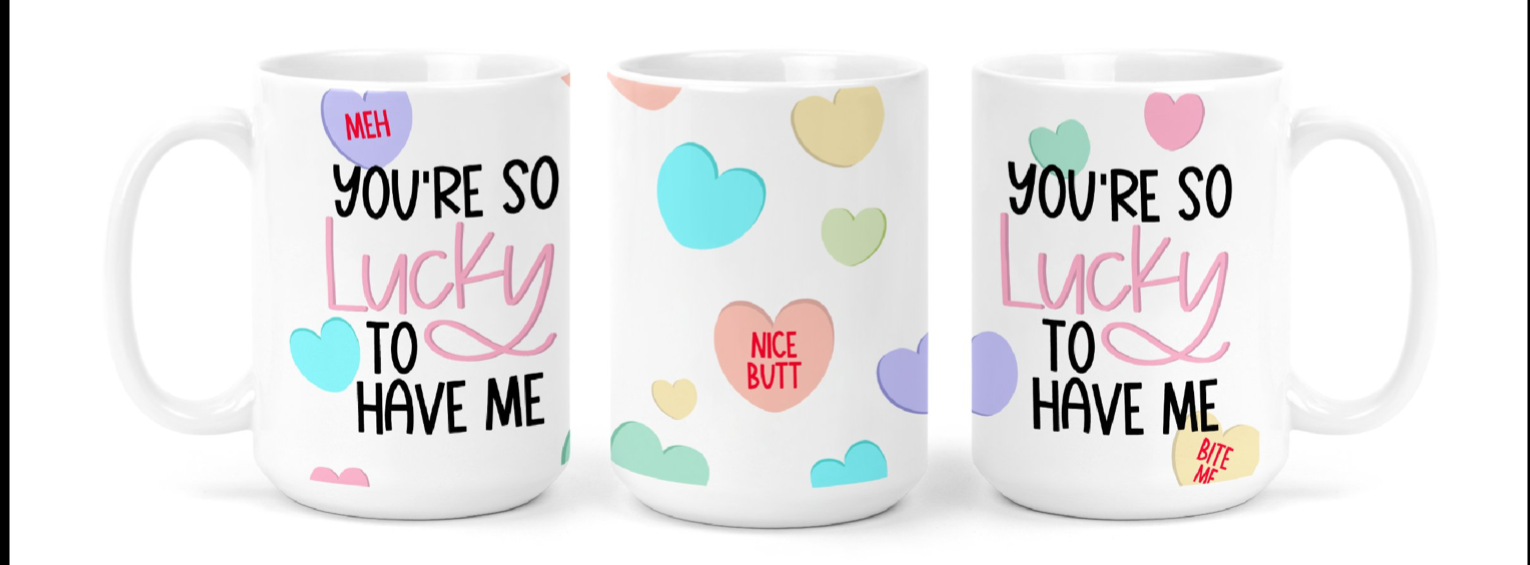 - Tekst: You're so lucky to have me . Achterkant: nice butt