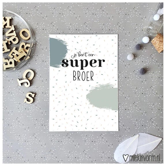 De kaart is A6-formaat en is geprint op stevig kaartpapier met een ruwe matte uitstraling. Op de achterzijde is ruimte voor een adres en een persoonlijke boodschap.