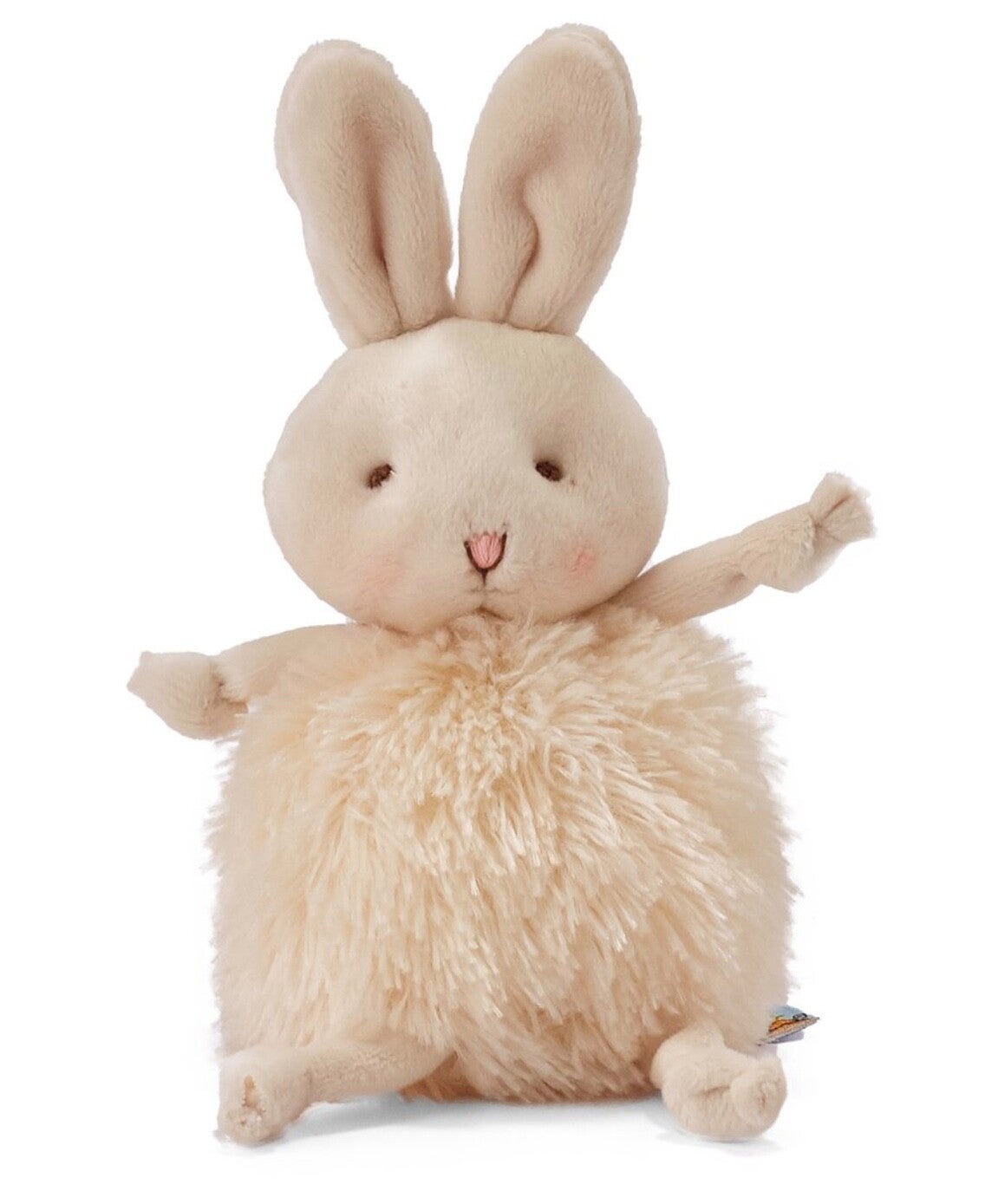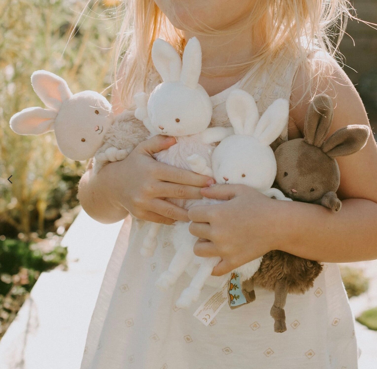 Dit crèmekleurige konijn heeft een zacht rond lijfje, lieve blozende wangetjes en schattige hangende pootjes.