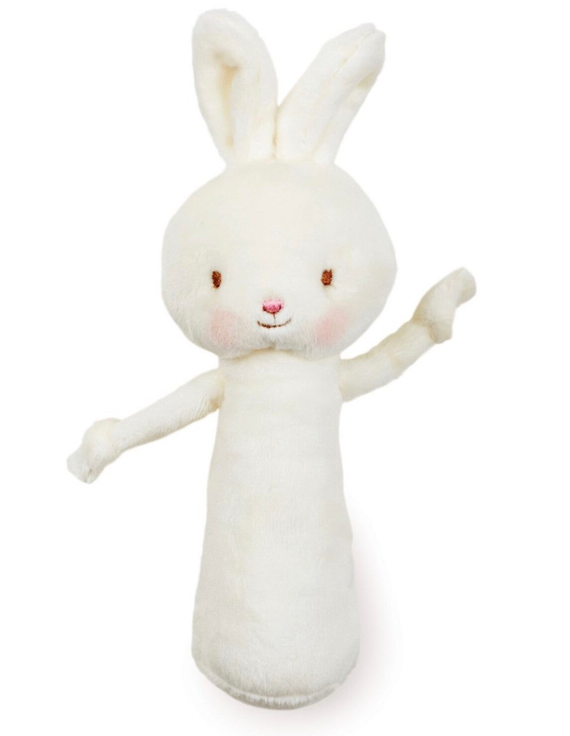 Een schattige rammelaar in de vorm van een konijn! Schud met de rammelaar en hoor het belletje!