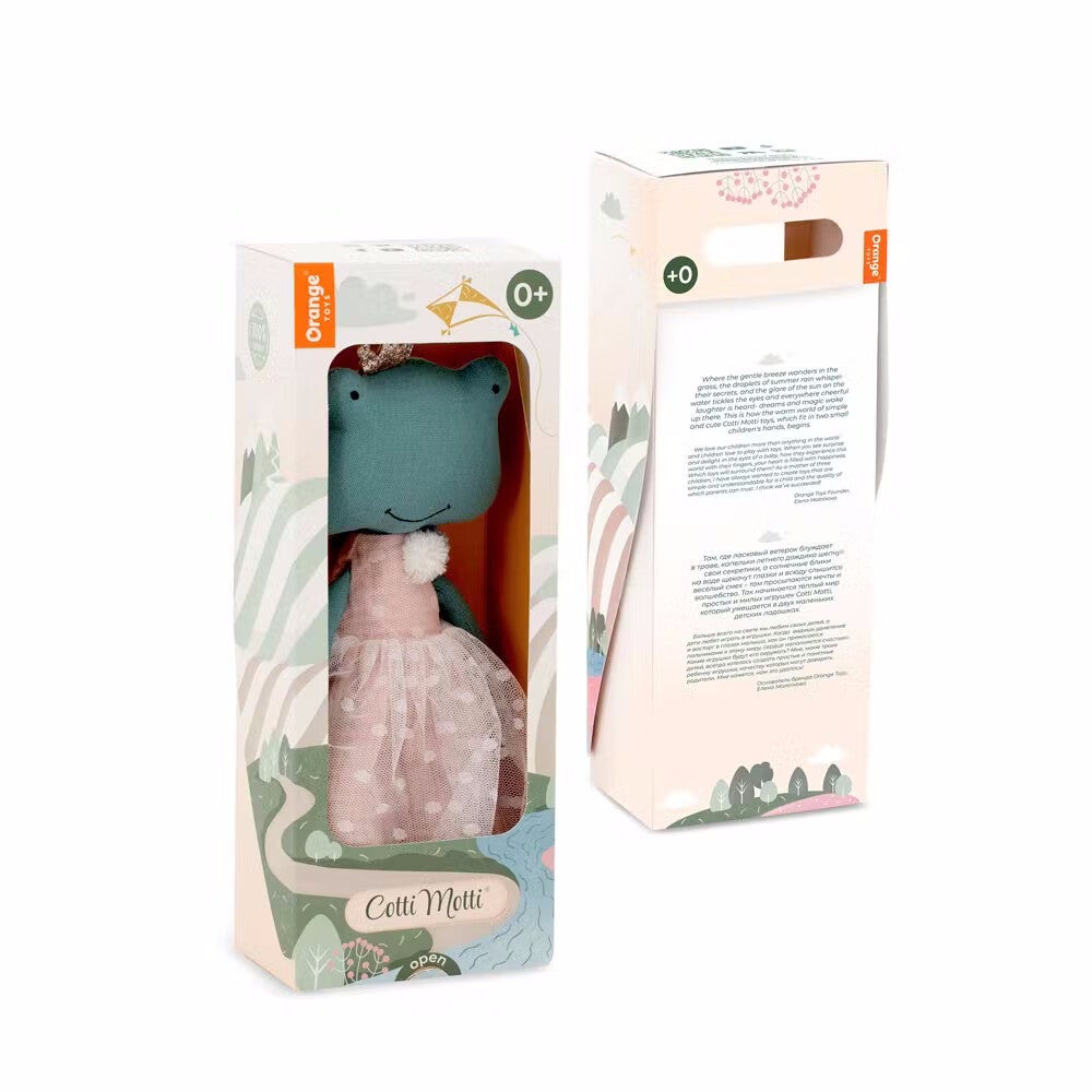 Verhaal: Fiona de Kikker is de charmantste kikker ter wereld. En mooie outfits geven haar charme! Fiona is gekleed in een roze mousseline jurk met roosjes op het lijfje. Ze draag een glanzende kroon. De kleding is gemaakt van 100% biologisch katoen en is volledig uit en aan te doen.