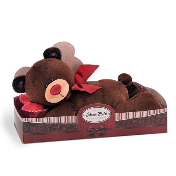 Beschrijving;Uit de collectie van twee schattige en stijlvolle chocoladekleurige beren met kleine satijnen hartjes op hun zolen en oren: Jongen Choco.In Geschenkdoos.Afmetingen: 30cmMerk Orange Toys. Handgemaakt.