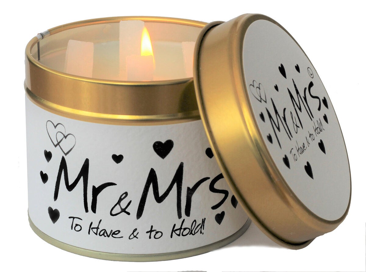 Tekst op box: Mr & Mrs Est *jaartal* Hele complete box vol met leuke kado'tjes met persoonlijke touch! Het leukste kado voor een kersvers bruidspaar.